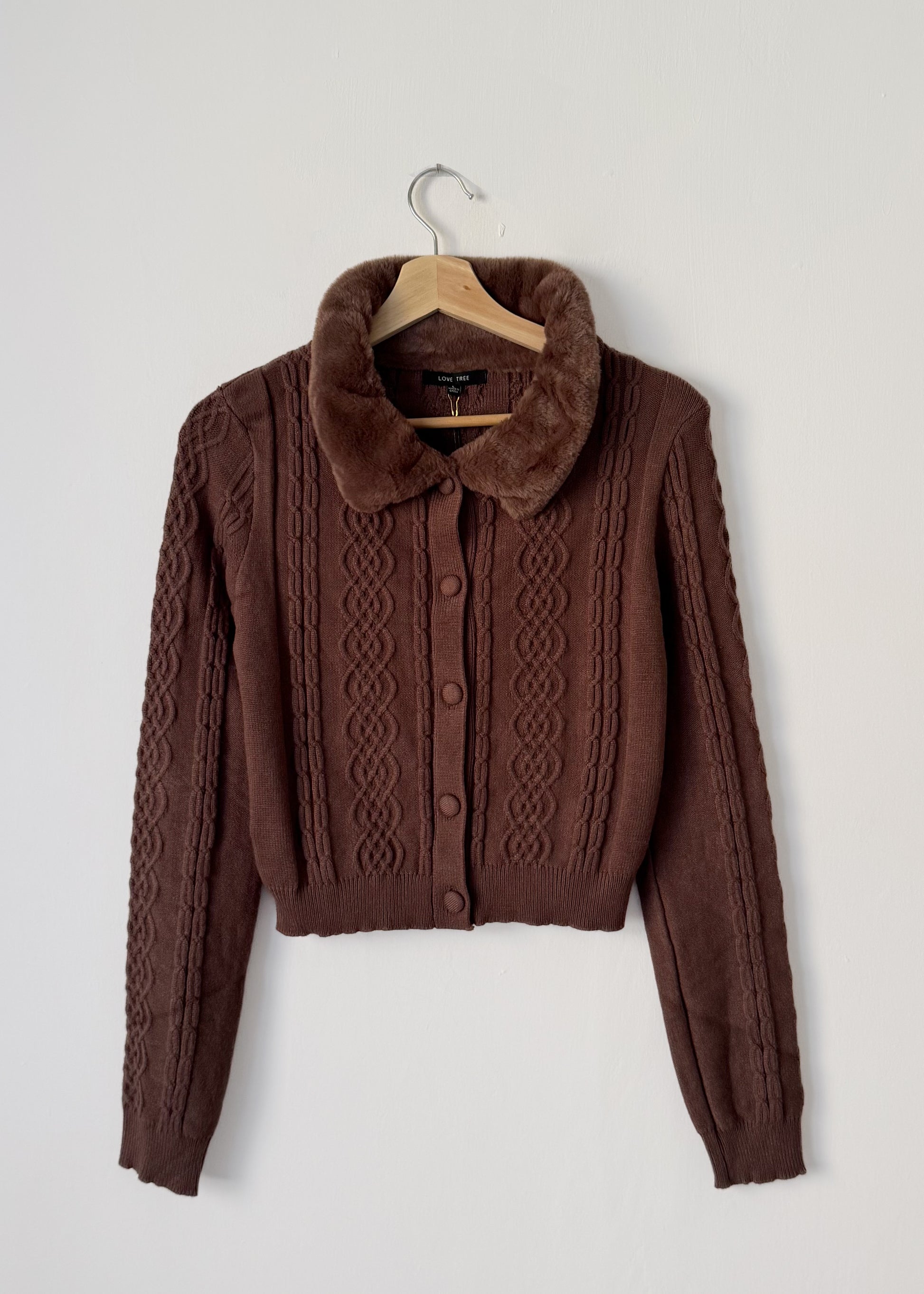 Cardigan tejido de punto con botones y cuello en peluche