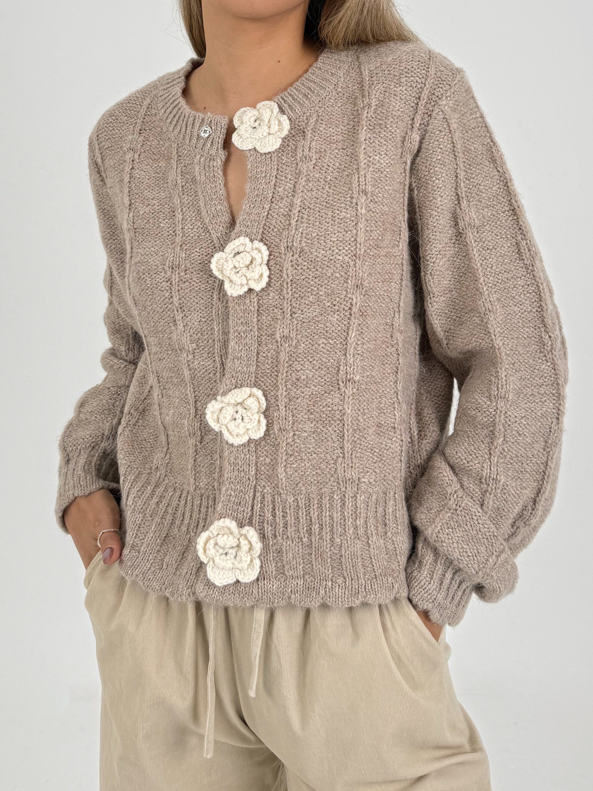 Suéter tipo cardigan con aplicaciones en los botones delanteros.